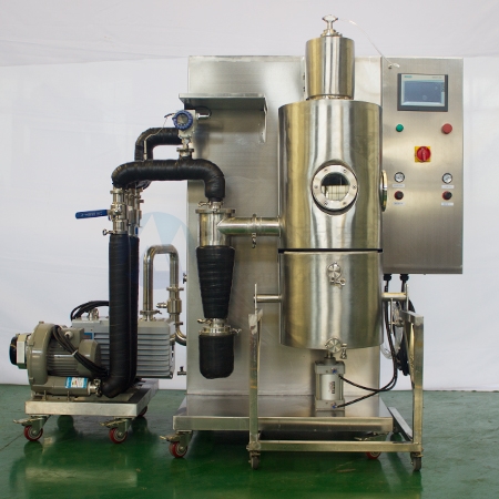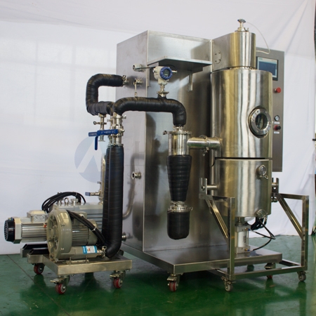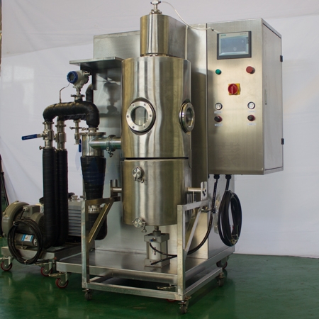 實驗室冷凍噴霧干燥機(jī)適用于熱敏性、粘稠性、活性物料及含糖量高的物料的低溫干燥,如中草藥天然產(chǎn)物提取液、乳制品、生物制劑、酶制劑、水果原汁、高分子材料等。