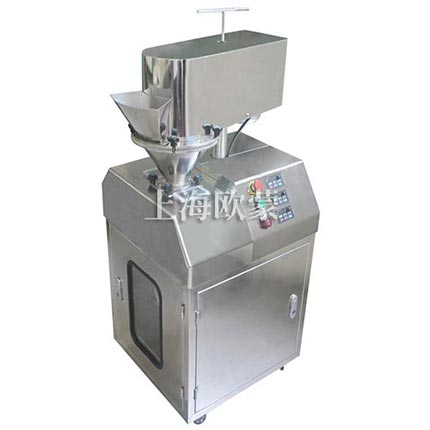 本機有送料機構、壓片機構、液壓機構、機架和電氣控制等部件組成,送料,壓片、制粒均采用變頻無級調(diào)速,油泵壓力可調(diào),成品細度可以通過更換不同的篩網(wǎng)獲得。改進制粒轉(zhuǎn)籠,增加了顆粒的成品率。本機裝拆、清洗方便,與物料接觸部分皆為不銹鋼制作。產(chǎn)品符合GMP要求。物料由頂部送料漏斗加入,經(jīng)兩壓輪強制擠壓成片狀后進入下部制粒室,在制粒室中片狀物料被制粒刀片打碎,然后進入整粒室,直至顆粒小于或等于網(wǎng)孔徑,顆粒通過網(wǎng)篩到盛料托盤。所需要顆粒大小可以通過調(diào)整篩網(wǎng)大小來決定。